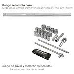 - Mango recambio para Juego Llaves De Vaso Cromo Vanadio 21 Piezas 3/4" Plus Con Maletin 02350060
